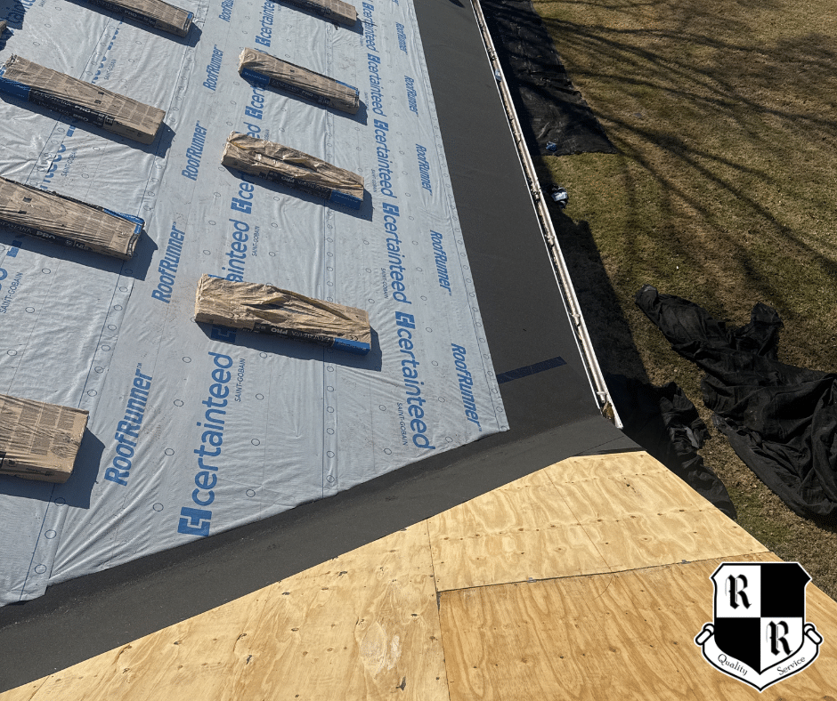 Next, we applied a synthetic underlayment across the remaining roof surface. Underlayment acts as a secondary barrier against moisture while also improving the overall performance of the roofing system.